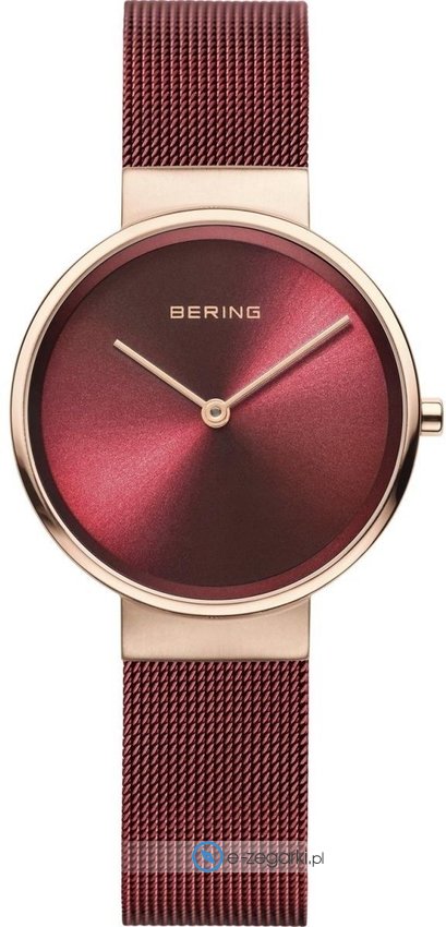 Zegarek damski 14531-363 marki Bering to idealne połączenie funkcjonalności a także ciekawego wzornictwa. Model ten występuje w serii Bering Classic, która słynie z duńskiego minimalizmu i ponadczasowej elegancji. Nieschematyczny wygląd czasomierza osiągnięto również dzięki tarczy w kolorze czerwonym. Godzina pokazywana jest w sposób analogowy co bez trudu pozwala ją odczytać. Koperta jest w kolorze różowo złotym szeroka jest na 31 mm oraz ma grubość 6 mm - ma okrągły kształt. Ten subtelny rozmiar idealnie podkreśli delikatny, kobiecy nadgarstek.
