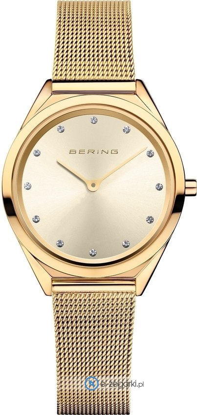 Bering 17031-333 to damski zegarek kierowany dla osób szukających zegarka z kolekcji Bering Classic. Charakteru dodaje wysokiej klasy tarcza w kolorze złotym. Godzina pokazywana jest w sposób analogowy co intuicyjnie pozwala ją odczytać. Koperta w odcieniach koloru złotego szeroka jest na 31 mm oraz ma grubość 5 mm - wyróżnia się okrągłym kształtem.
