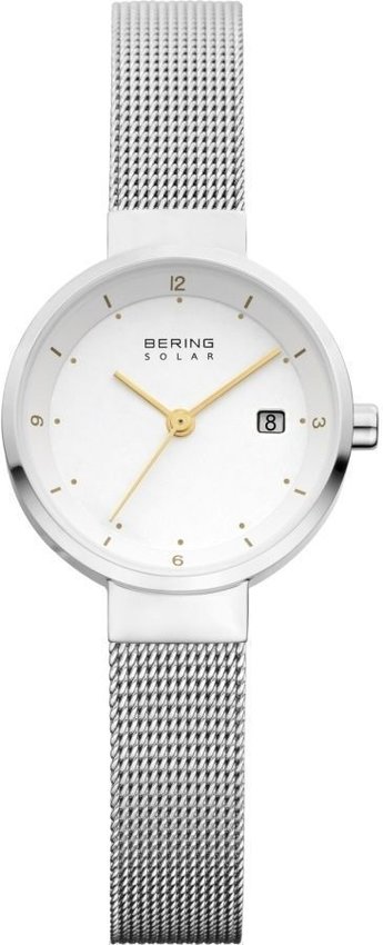 Zegarek damski 14426-001 marki Bering to stylowe połączenie funkcjonalności i modnego designu. Model ten pochodzi z serii Solar. Charakterystyczny wygląd czasomierza uzyskano poprzez tarczę w kolorze białym. Koperta została ozdobiona kolorem stalowym szeroka jest na 26 mm - w kształcie okrągłym.