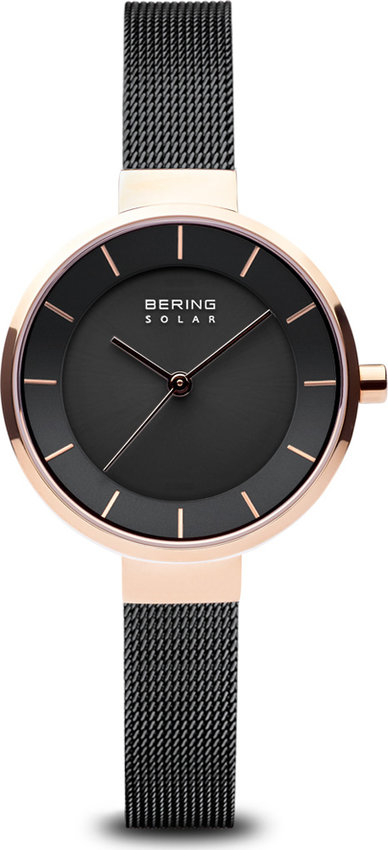 Model damski 14631-166 marki Bering z kolekcji Bering Solar. Stylu nadaje wysokiej klasy tarcza w kolorze czarnym. Koperta szeroka jest na 31 mm - wyróżnia się okrągłym kształtem.