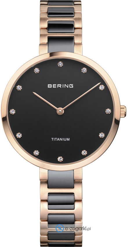 Zegarek damski 11334-762 marki Bering to idealne połączenie funkcjonalności a także ciekawego wzornictwa. Model ten pochodzi z serii Zegarki Titanium. Zachęcamy do zapoznania się z pełną ofertą tej kolekcji, dostępną pod linkiem: Bering Titanium. Ciekawą konstrukcję zegarka osiągnięto dzięki tarczy w kolorze czarnym. Koperta szeroka jest na 34 mm, co podkreśla jej subtelność i biżuteryjny charakter - ma okrągły kształt.
