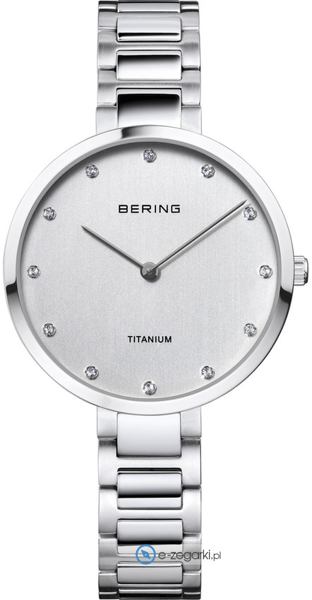 Zegarek 11334-770 marki Bering to stylowy zegarek naręczny damski, który posiada ciekawe rozwiązania i funkcje. Model ten występuje w kolekcji Zegarki Titanium. Wysokiej trwałości tarczę zegarka ozdobiono białym kolorem. Koperta jest w kolorze stalowym szeroka jest na 34 mm - charakteryzuje się okrągłym kształtem.