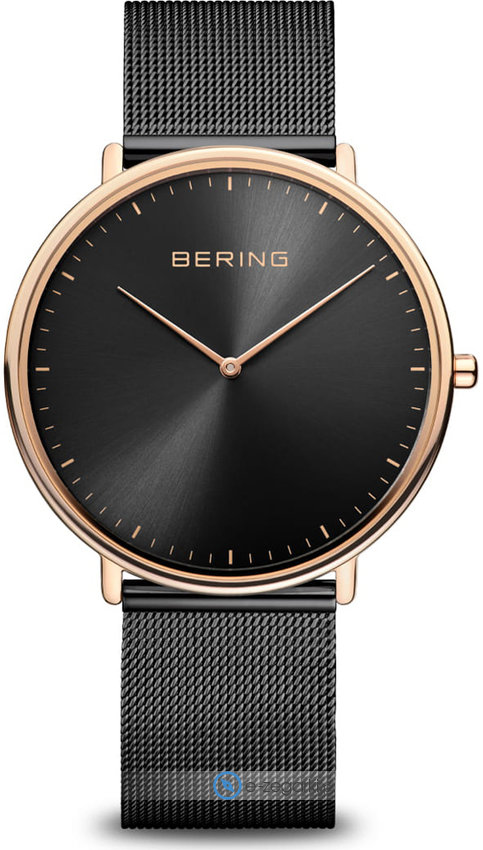 Zegarek 15739-166 marki Bering to stylowy zegarek naręczny damski, który wyposażono w pomysłowe rozwiązania i funkcje. Model ten pochodzi z kolekcji Bering Ultra Slim. Charakteru nadaje wysokiej jakości cyferblat w kolorze czarnym. Zaprezentowana metodą analogową bieżąca godzina jest czytelna i łatwa do sprawdzenia. Koperta szeroka jest na 39 mm oraz ma grubość 5 mm - ma okrągły kształt.