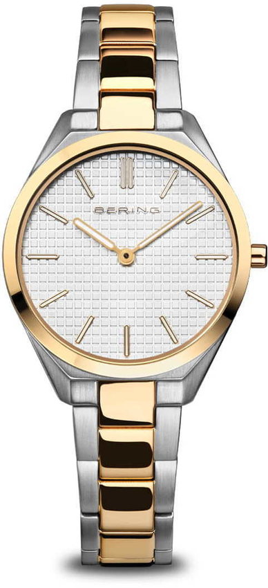 Bering 17231-704 to damski zegarek kierowany dla osób szukających zegarka z kolekcji Bering Ultra Slim. Nieschematyczny wygląd zegarka osiągnięto również dzięki tarczy w kolorze białym. Zegarek ten pokazuje aktualny czas w formacie analogowym dzięki temu odczyt jest bardzo łatwy. Koperta szeroka jest na 31 mm oraz ma grubość 5 mm - w kształcie okrągłym.