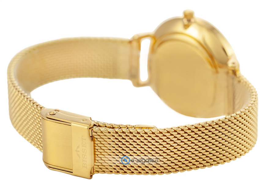 Model BSBF30GIGX03BX marki Bisset to stylowy zegarek naręczny damski, który posiada ciekawe rozwiązania i funkcje. Ciekawą konstrukcję zegarka osiągnięto z pomocą tarczy w kolorze złotym. Zegarek ten prezentuje aktualny czas w formacie analogowym dzięki temu odczyt jest bezproblemowy. Koperta jest w kolorze złotym o grubości 7 mm - ma okrągły kształt.