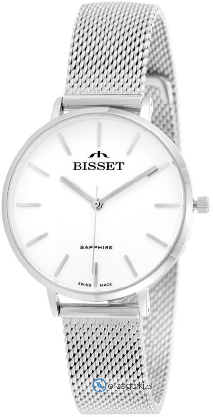 Zegarek damski BSBF32SIWX03BX marki Bisset to idealna pozycja dla osób ceniących sobie dbałość o szczegóły jak również bezproblemowe działanie mechanizmów. Niestereotypowy wygląd zegarka uzyskano także dzięki tarczy w kolorze białym. Zegarek ten pokazuje aktualny czas w formacie analogowym dzięki czemu odczyt jest bardzo łatwy. Koperta jest w kolorze srebrnym szeroka jest na 33 mm oraz ma grubość 7 mm - wyróżnia się okrągłym kształtem.