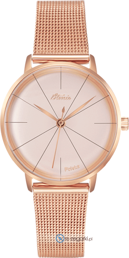 Odkryj zegarek damski Błonie Róża z serii Zodiak, który zachwyca eleganckim designem inspirowanym oryginałami z lat 60. Ten zegarek Błonie damski na bransolecie łączy minimalistyczny styl z nowoczesnymi materiałami, oferując precyzyjny kwarcowy mechanizm i różowo-złotą tarczę o czytelnym analogowym odczycie. Idealny dla kobiet ceniących biżuteryjny charakter i klasyczną elegancję, zegarek na bransolecie ze stali nierdzewnej zapewnia trwałość i komfort na co dzień. Subtelny okrągły kształt koperty o średnicy 30 mm i cienkim profilu sprawia, że pasuje do każdej stylizacji - od biurowej po wieczorową. Polskie zegarki Błonie wyróżniają się unikalnym wzornictwem, nawiązującym do kultowych modeli, z podwójnie wypukłym szkłem mineralnym chroniącym tarczę. Zegarek Błonie Zodiak to symbol punktualności i indywidualnego stylu, z bransoletą mesh umożliwiającą regulację. Wysoka jakość stali nierdzewnej 316L pokrytej powłoką IP w kolorze różowego złota gwarantuje odporność na korozję i codzienne użytkowanie. Wybierz zegarek Błonie damski Róża i wyraź swoją kobiecość z klasą.