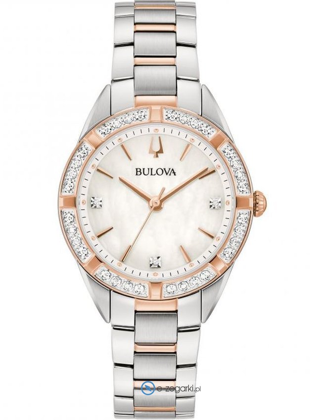Zegarek damski 98R281 marki Bulova to idealna pozycja dla ludzi ceniących sobie dbałość o detale a także bezproblemowe funkcjonowanie mechanizmów. Charakteru dodaje wysokiej klasy cyferblat w kolorze białym. Zegarek ten pokazuje godzinę w formacie analogowym dzięki czemu odczyt jest bezproblemowy. Koperta jest pokryta kolorem różowo złotym szeroka jest na 33 mm oraz ma grubość 8 mm - charakteryzuje się okrągłym kształtem.