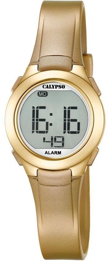 Zegarek damski K5677-3 marki Calypso to idealne połączenie funkcjonalności i modnego, sportowego wzornictwa. Calypso, marka kreująca zegarki dla osób, które czują się młodo duchem, prezentuje model, który wyróżnia się na tle innych brandów wyjątkowym wyglądem i przystępną ceną. Zespół projektantów Calypso wprowadza do asortymentu niebanalne kształty i odważne kolory, tworząc pomysłowe kolekcje zegarków. Wysokiej trwałości tarcza zegarka ozdobiona jest złotym kolorem, a aktualna godzina prezentowana metodą cyfrową jest czytelna i prosta do odczytania. Zegarek ten, jak wszystkie zegarki Calypso, objęty jest gwarancją producenta realizowaną w oficjalnym punkcie serwisowym przez dwa lata. To zegarek dla aktywnej kobiety, która ceni sobie wygodę i niezawodność.