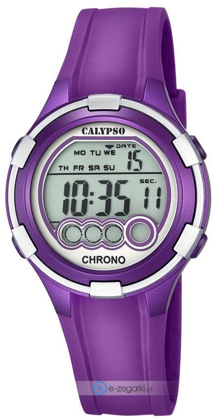 Zegarek damski K5692-5 marki Calypso to stylowe połączenie funkcjonalności i ciekawego designu. Charakterystyczny wygląd czasomierza osiągnięto poprzez tarczę w kolorze fioletowym. Koperta szeroka jest na 36 mm - posiada okrągły kształt.