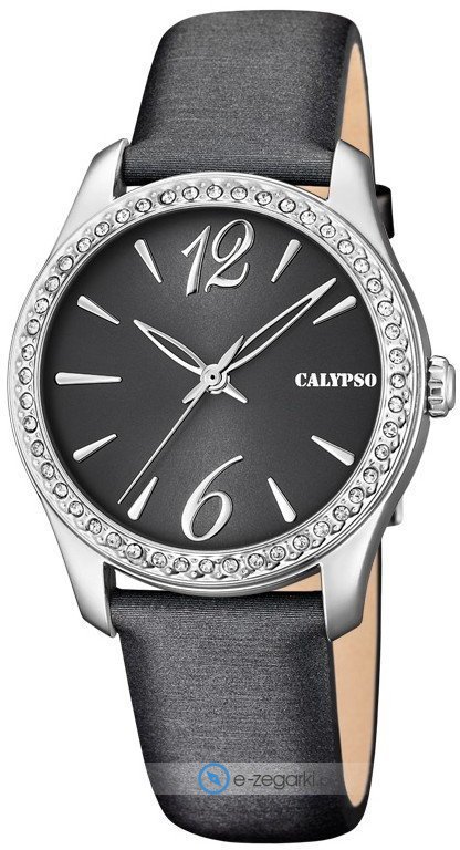 Model K5717-4 marki Calypso to gustowny zegarek naręczny damski, który jest wyposażony w ciekawe rozwiązania oraz funkcje. Nieschematyczny wygląd czasomierza uzyskano poprzez tarczę w kolorze szarym. Koperta szeroka jest na 34 mm - w kształcie okrągłym.