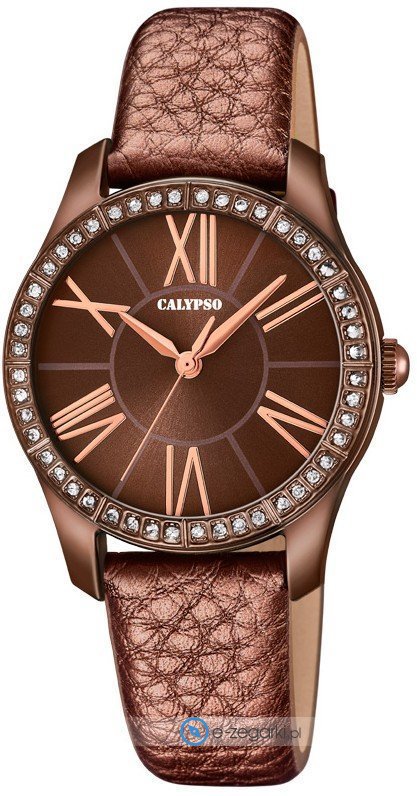 Zegarek damski K5719-6 marki Calypso to stylowe połączenie funkcjonalności a także modnego designu. Wysokiej trwałości cyferblat zegarka pokryto brązowym kolorem. Zegarek ten prezentuje aktualny czas w formacie analogowym dzięki czemu odczyt jest intuicyjny. Koperta szeroka jest na 33 mm - posiada okrągły kształt.