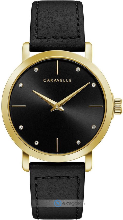 Zegarek damski 44L255 marki Caravelle to dobra pozycja dla ludzi ceniących sobie dbałość o detale jak również bezawaryjne funkcjonowanie mechanizmów. Styl zapewnia wysokiej jakości tarcza w kolorze czarnym. Aktualna godzina prezentowana jest w sposób analogowy co intuicyjnie pozwala ją odczytać. Koperta została pokryta kolorem złotym szeroka jest na 36 mm - posiada okrągły kształt.