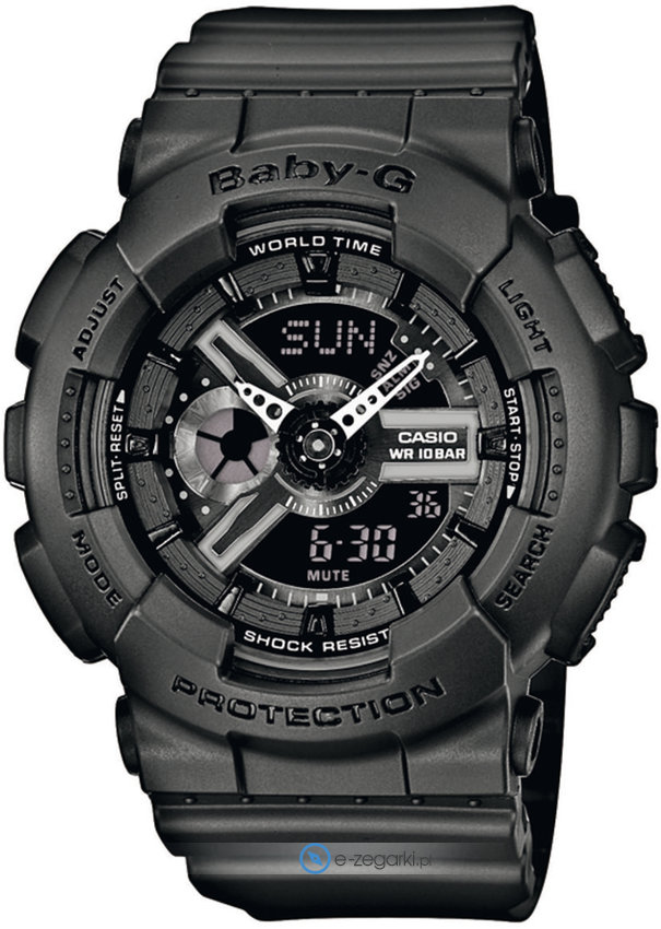 Zegarek damski BA-110BC-1AER marki Casio należy do kolekcji Casio Baby-G. Styl zapewnia wysokiej jakości cyferblat w kolorze czarnym. Zegarek ten pokazuje godzinę w formacie analogowo - cyfrowym dzięki czemu odczyt jest bezproblemowy. Koperta jest w kolorze czarnym szeroka jest na 43 mm oraz ma grubość 15 mm - posiada okrągły kształt.