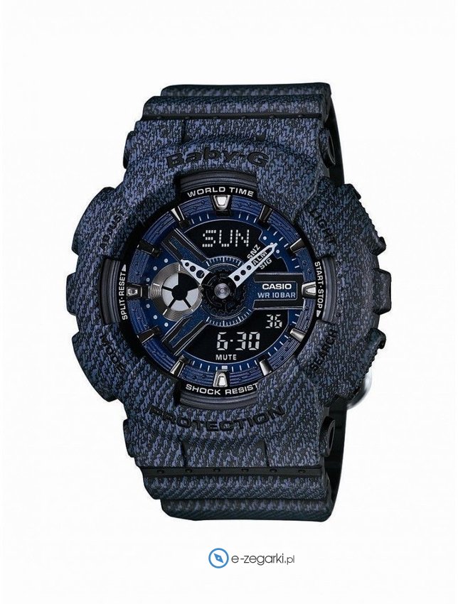 Model damski BA-110DC-2A1ER zalicza się do kolekcji Casio Baby-G marki Casio. Aktualna godzina przedstawiona jest w sposób analogowo - cyfrowy co niezmiernie łatwo pozwala ją odczytać. Koperta szeroka jest na 43 mm oraz ma grubość 16 mm.