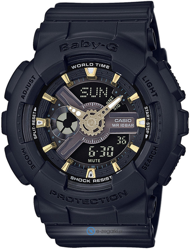 Casio BA-110GA-1AER - damski zegarek przeznaczony dla osób szukających zegarka z rodziny Casio Baby-G. Zegarek ten prezentuje godzinę w formacie analogowo - cyfrowym dzięki czemu odczyt jest bardzo łatwy. Koperta szeroka jest na 43 mm oraz ma grubość 14 mm.