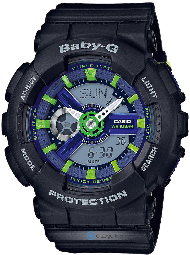 Model BA-110PP-1AER posiada mechanizm zasilany standardową baterią kwarcową. System wstrząsoodporny zabezpiecza zegarek przeciwko wstrząsom i uderzeniom.