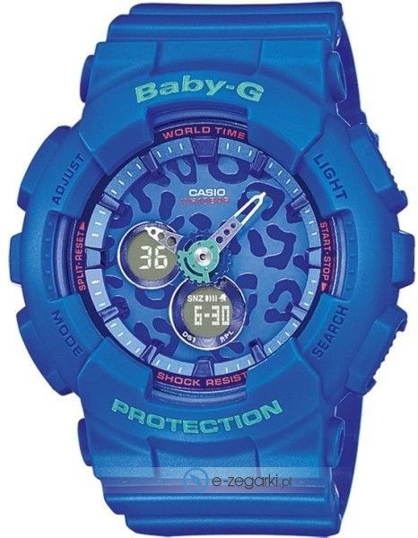 Zegarek damski BA-120LP-2AER marki Casio należy do rodziny Casio Baby-G. Aktualna godzina pokazywana jest w sposób analogowo - cyfrowy co niezmiernie łatwo pozwala ją odczytać. Koperta szeroka jest na 43 mm oraz ma grubość 15 mm.