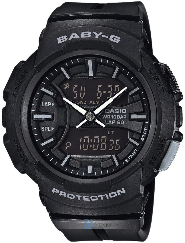 Zegarek BGA-240BC-1AER wyposażony jest w mechanizm zasilany tradycyjną baterią kwarcową. Zwiększona odporność na wstrząsy oraz uderzenia zapewniona przez system wstrząsoodporny.