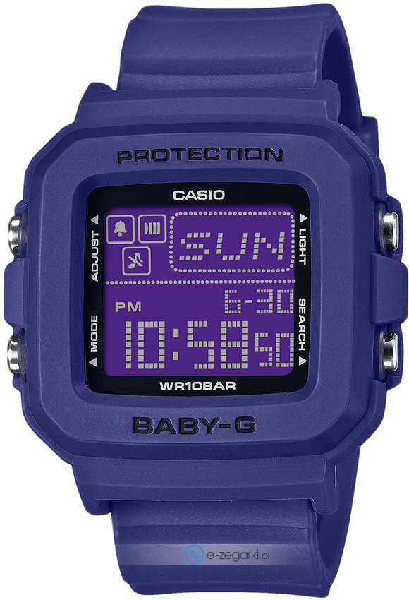 Zegarek damski BGD-10K-2ER marki Casio to stylowe połączenie funkcjonalności i ciekawego designu. Zaprezentowana metodą cyfrową aktualna godzina jest czytelna i łatwa do sprawdzenia. Koperta została pokryta kolorem fioletowym szeroka jest na 39 mm oraz ma grubość 15 mm - w kształcie prostokątnym.