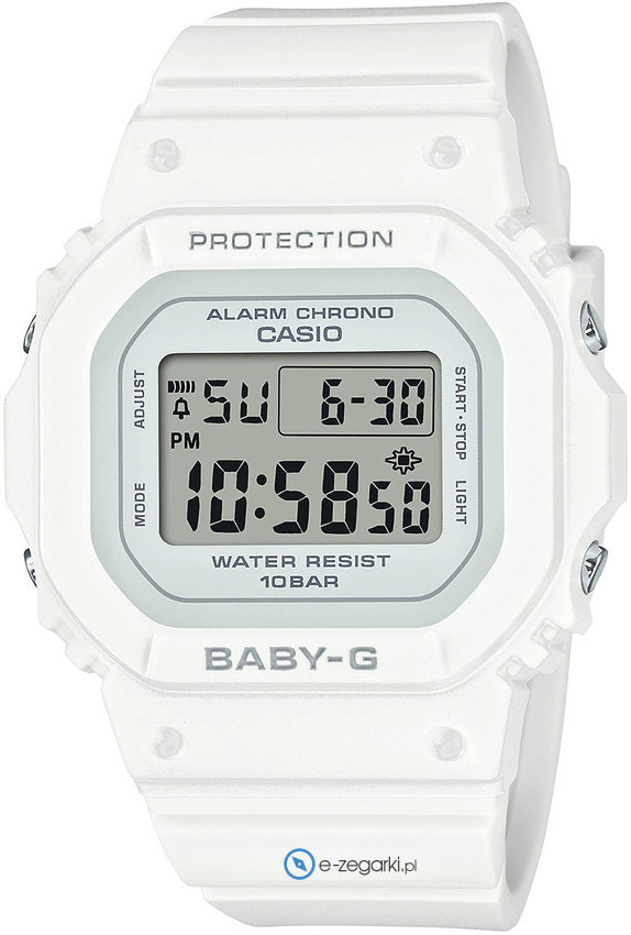 Model damski BGD-565-7ER zalicza się do kolekcji Casio Baby-G marki Casio. Aktualna godzina pokazywana jest w sposób cyfrowy co bez trudu pozwala ją odczytać. Koperta jest w kolorze białym szeroka jest na 38 mm oraz ma grubość 11 mm - posiada prostokątny kształt.
