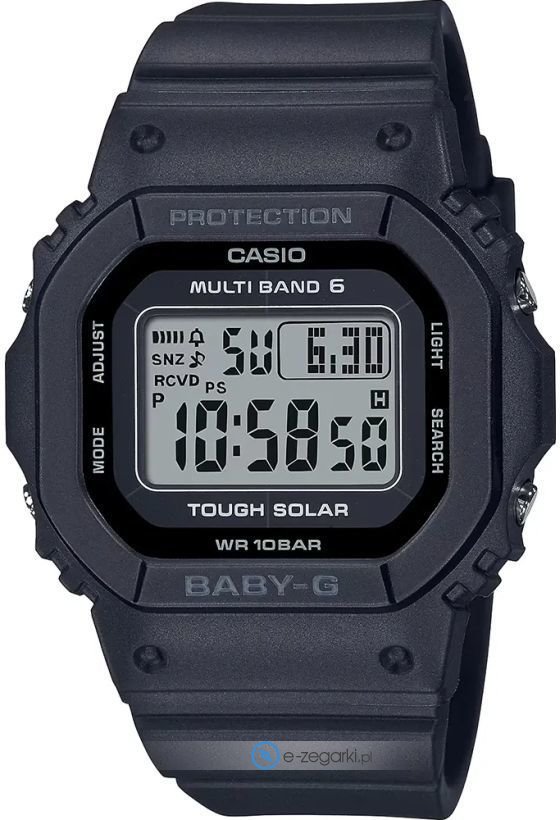 Model BGD-5650-1ER marki Casio to stylowy zegarek naręczny damski, który jest wyposażony w ciekawe rozwiązania i funkcje. Aktualna godzina przedstawiona jest w sposób cyfrowy co intuicyjnie pozwala ją odczytać. Koperta w odcieniach koloru czarnego szeroka jest na 38 mm oraz ma grubość 11 mm - wyróżnia się prostokątnym kształtem.