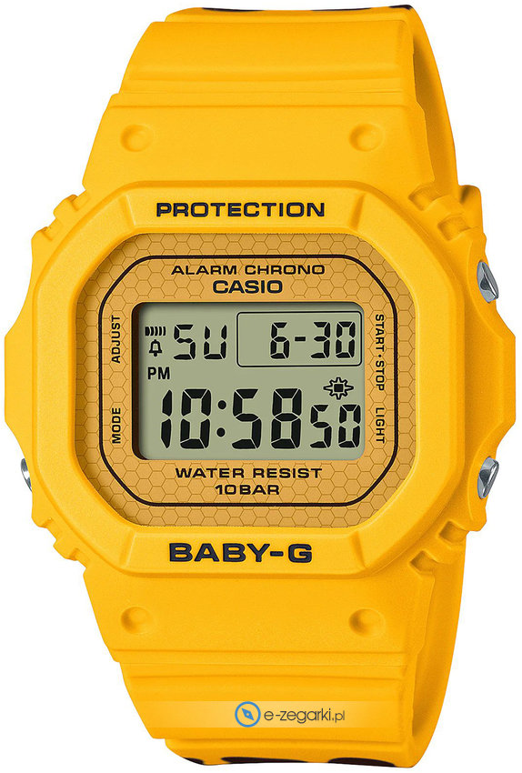 Zasilanie zegarka BGD-565SLC-9ER to tradycyjna bateria kwarcowa. Pasek jest w kolorze żółtym zrobiony jest z wysokiej jakości tworzywa sztucznego.