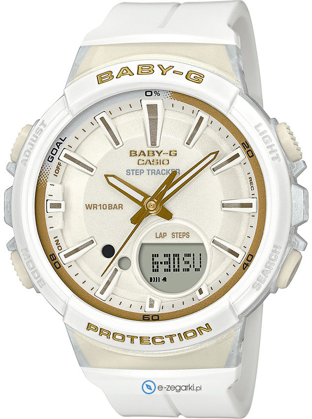 Damski zegarek BGS-100GS-7AER z serii Casio Baby-G marki Casio to połączenie estetyki oraz ciekawych mechanizmów. Cyferblat zegarka w kolorze białym. Pokazana metodą analogowo - cyfrową aktualna godzina jest czytelna i szybka do sprawdzenia. Koperta jest w kolorze białym szeroka jest na 42 mm oraz ma grubość 12 mm - cechuje się okrągłym kształtem.