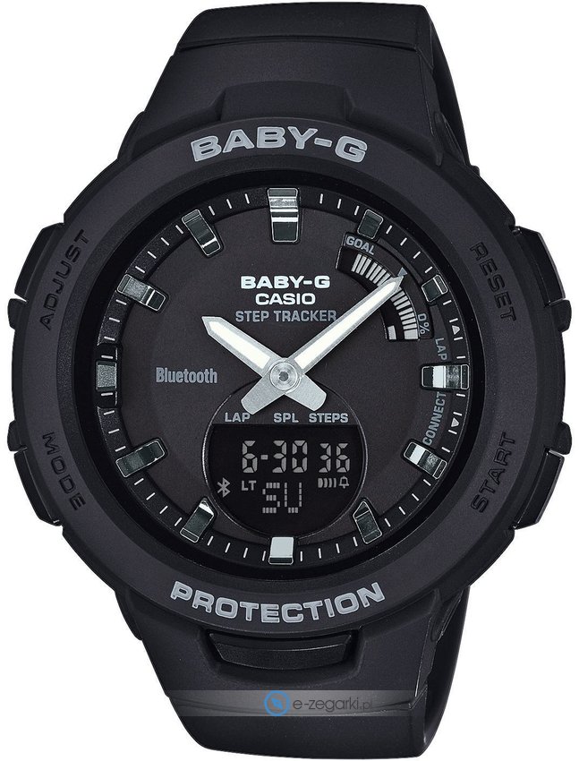 Dodatkowo zegarek Casio BSA-B100-1AER posiada funkcje takie jak bluetooth z pomocą którego sparujemy zegarek ze smartwatchem.