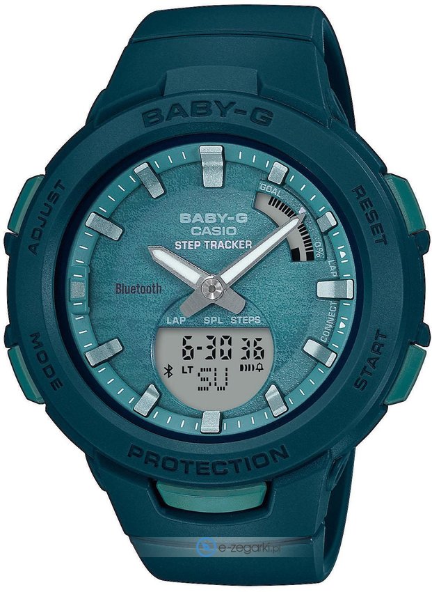 Dodatkowo model Casio BSA-B100AC-3AER posiada funkcje takie jak bluetooth z pomocą którego połączymy zegarek ze smartwatchem.