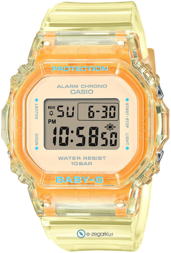 Zegarek damski BGD-565SJ-9ER marki Casio to dobre połączenie funkcjonalności i modnego wzornictwa. Nieschematyczny wygląd zegarka uzyskano również dzięki tarczy w kolorze beżowym. Pokazana metodą cyfrową bieżąca godzina jest czytelna i łatwa do odczytania. Koperta w odcieniach koloru zółtego szeroka jest na 38 mm oraz ma grubość 11 mm - w kształcie prostokątnym.