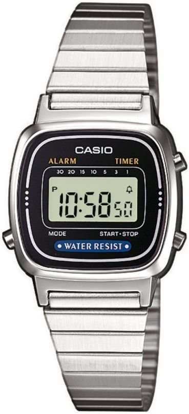 Zegarek damski LA670WEA-1EF marki Casio to idealne połączenie funkcjonalności a także modnego wzornictwa. Model ten zalicza się do serii Casio Collection. Niestereotypowy wygląd czasomierza osiągnięto także dzięki tarczy w kolorze czarnym. Godzina zaprezentowana jest w sposób cyfrowy co intuicyjnie pozwala ją odczytać. Koperta w barwach koloru srebrnego szeroka jest na 24 mm oraz ma grubość 7 mm - w kształcie prostokątnym.