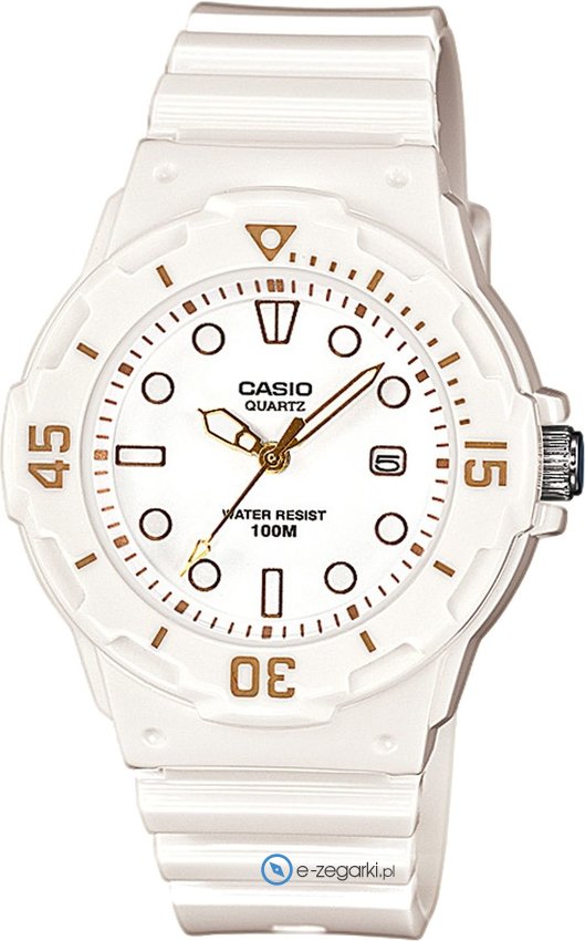 Zegarek LRW-200H-7E2VEF zasilany jest za pomocą baterii kwarcowej. Pasek koloru białego zrobiony jest z wysokiej jakości tworzywa sztucznego.