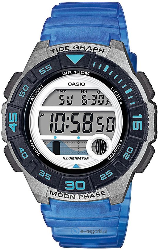 Zegarek LWS-1100H-2AVEF wyposażony jest w mechanizm zasilany normalną baterią kwarcową. Pasek w tonacji koloru niebieskiego zrobiony jest z wysokiej jakości tworzywa sztucznego.