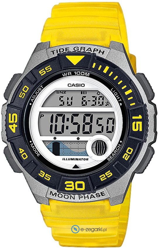 Zasilanie zegarka LWS-1100H-9AVEF to standardowa bateria kwarcowa. Pasek koloru zółtego zrobiony jest z wysokiej jakości tworzywa sztucznego.