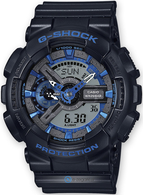 Model GA-110CB-1AER posiada mechanizm zasilany normalną baterią kwarcową. Zwiększona odporność na wstrząsy oraz uderzenia zapewniona przez system wstrząsoodporny.
