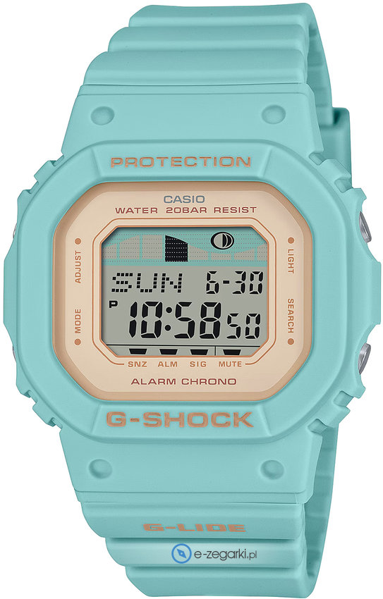 Zegarek damski GLX-S5600-3ER marki Casio to dobre połączenie funkcjonalności oraz modnego wzornictwa. Model ten w gamie pozostałych zegarków tego producenta występuje w serii Casio G-Shock. Cyferblat zegarka jest w kolorze beżowym. Zaprezentowana metodą cyfrową bieżąca godzina jest czytelna i prosta do sprawdzenia. Koperta w odcieniach koloru niebieskiego szeroka jest na 41 mm oraz ma grubość 12 mm.