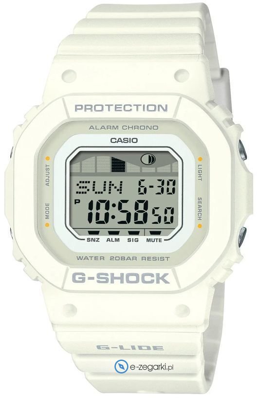Kwarcowa bateria zamontowana w zegarku GLX-S5600-7BER zapewnia zasilanie jego mechanizmu. Pasek białego koloru zrobiony jest z wysokiej jakości tworzywa sztucznego.