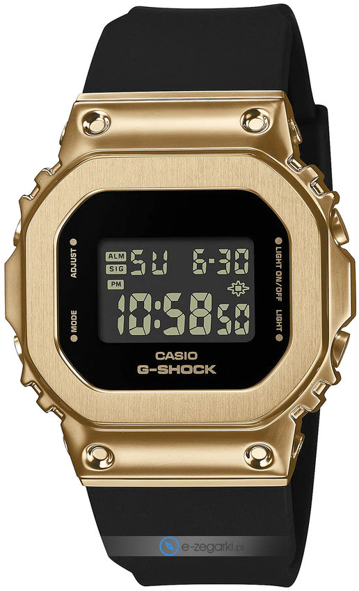 Zegarek GM-S5600GB-1ER marki Casio to elegancki zegarek naręczny damski, który jest wyposażony w ciekawe rozwiązania oraz funkcje. Model ten należy do kolekcji Casio G-Shock. Cyferblat zegarka jest w kolorze czarnym. Zegarek ten prezentuje aktualny czas w formacie cyfrowym dzięki temu odczyt jest intuicyjny. Koperta w barwach koloru złotego szeroka jest na 38 mm oraz ma grubość 10 mm.