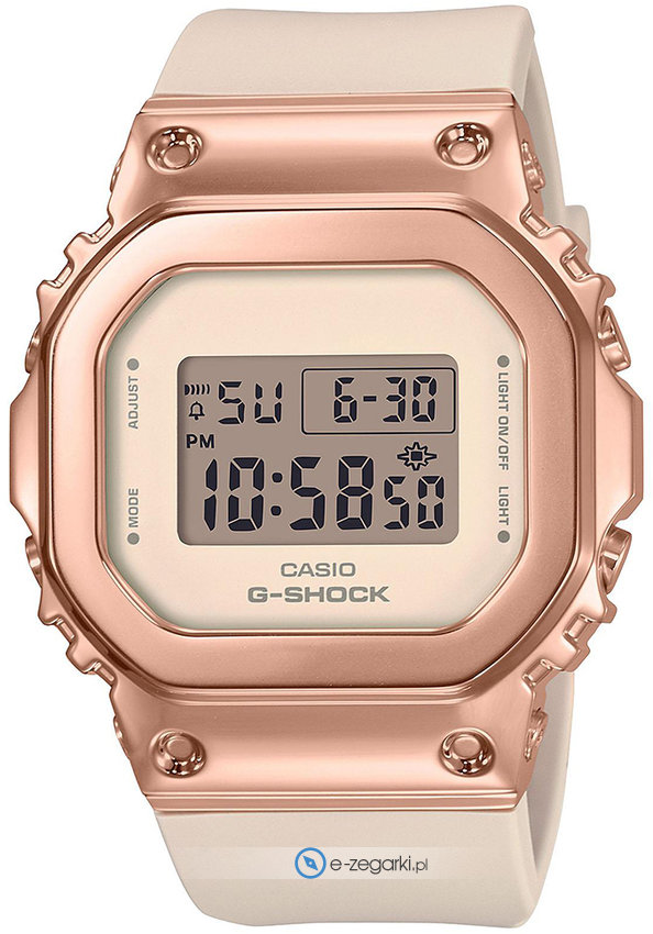 Model damski GM-S5600PG-4ER należy do rodziny Casio G-Shock marki Casio. Koperta szeroka jest na 38 mm oraz ma grubość 10 mm.