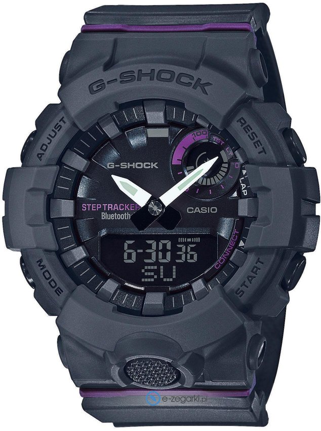 Zegarek ten to tzw Smartwatch - jest wyposażony w segment Smart umożliwiający połączenie zegarka z telefonem i obsługę dodatkowych funkcji z pomocą specjalnej aplikacji zainstalowanej w telefonie. Zegarek GMA-B800-8AER posiada kwarcowy mechanizm zasilany normalną baterią.