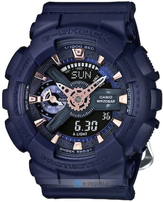 Model GMA-S110CM-2AER posiada mechanizm zasilany standardową baterią kwarcową. System wstrząsoodporny zapewnia bezpieczeństwo zegarka w każdych warunkach, dzięki temu masz pewność, że zegarek nie zostanie uszkodzony nawet w trudnych,ekstremalnych sytuacjach.