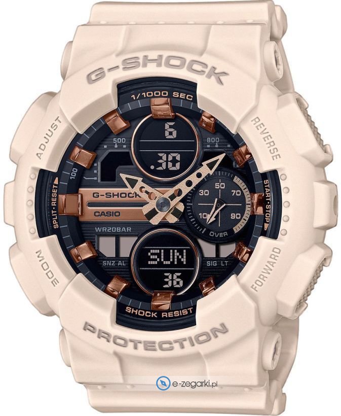Zegarek GMA-S140M-4AER wyposażony jest w mechanizm zasilany tradycyjną baterią kwarcową. System wstrząsoodporny umożliwia bezpieczeństwo zegarka w każdych warunkach, dzięki temu masz pewność, że zegarek nie zostanie uszkodzony nawet w trudnych,ekstremalnych sytuacjach.