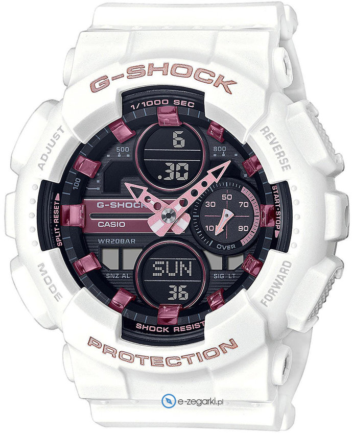 Model GMA-S140M-7AER posiada mechanizm zasilany normalną baterią kwarcową. System wstrząsoodporny zapewnia bezpieczeństwo zegarka w każdych warunkach, dzięki temu masz pewność, że zegarek nie zostanie uszkodzony nawet w trudnych,ekstremalnych sytuacjach.