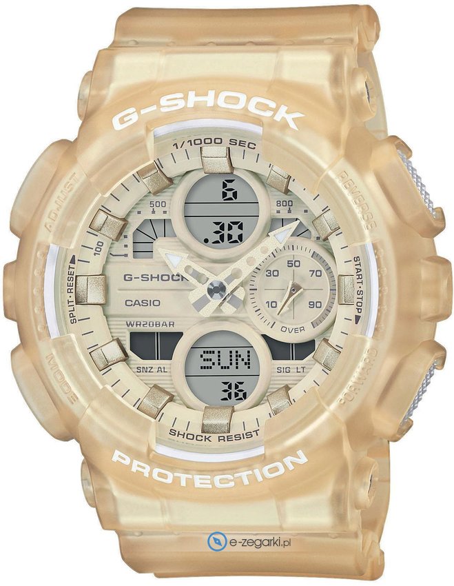 Zegarek damski GMA-S140NC-7AER marki Casio to idealne połączenie funkcjonalności oraz modnego designu. Model ten zalicza się do serii Casio G-Shock. Pokazana metodą analogowo - cyfrową aktualna godzina jest czytelna i łatwa do sprawdzenia. Koperta szeroka jest na 45.9 mm oraz ma grubość 15.8 mm - w kształcie okrągłym.