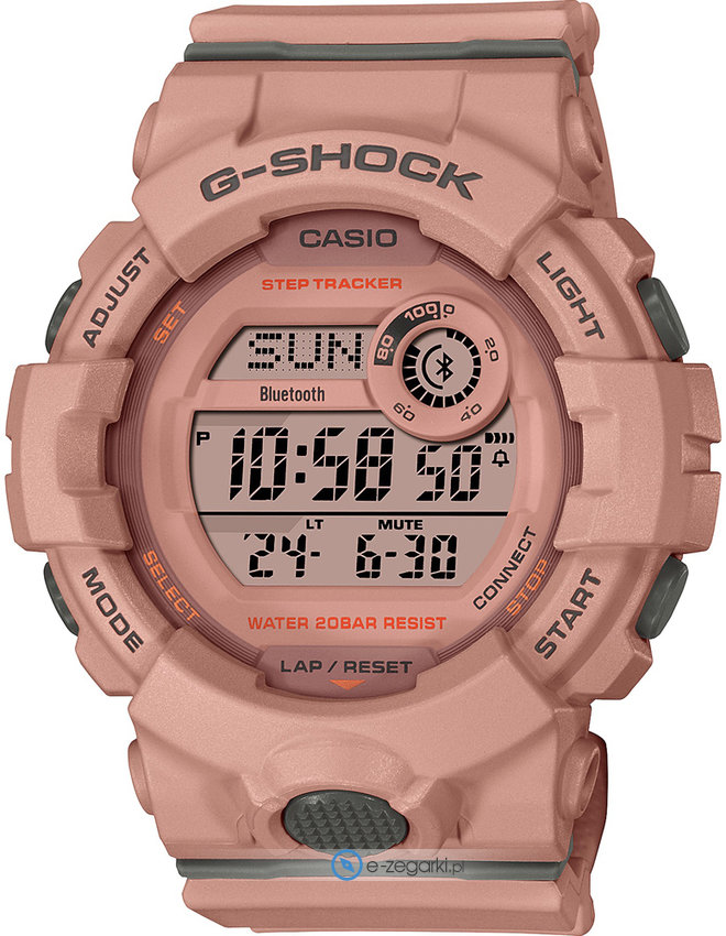 Wśród innych cech zegarka Casio GMD-B800SU-4ER można wyróżnić bluetooth z pomocą którego sparujemy zegarek ze smartwatchem.