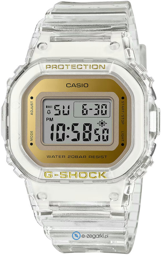Damski zegarek GMD-S5600SG-7ER z serii Casio G-Shock marki Casio to połączenie smaku oraz nowatorskich funkcji. Charakterystyczną konstrukcję zegarka uzyskano dzięki tarczy w kolorze złotym. Pokazana metodą analogową aktualna godzina jest czytelna i szybka do odczytania. Koperta szeroka jest na 41 mm oraz ma grubość 12 mm - wyróżnia się prostokątnym kształtem.