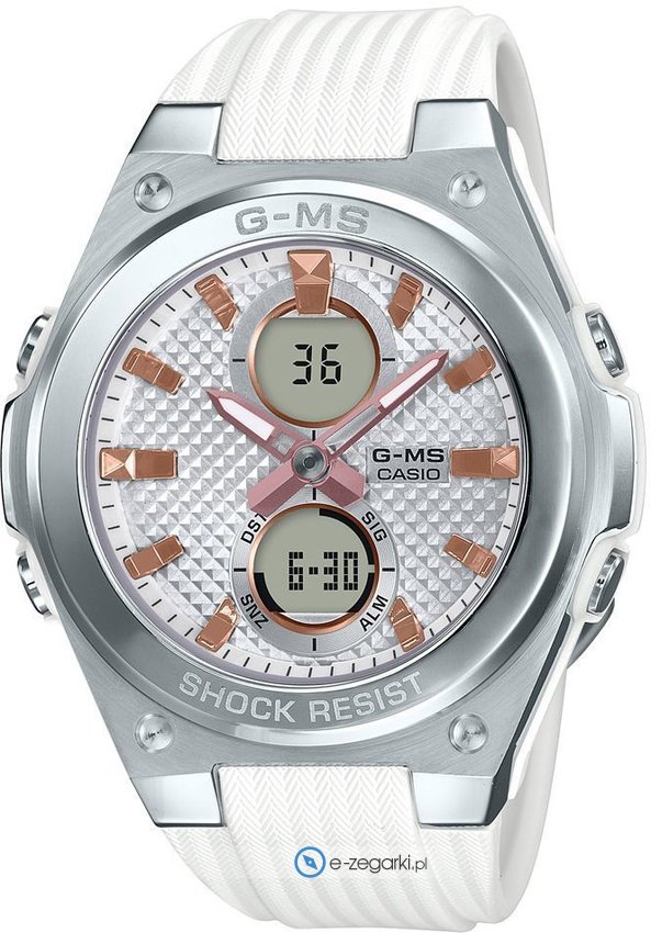 Casio wyprodukowało kolekcję G-MS. W zależności od rodzaju modelu czasomierze te wyposażone mogą być w mechanizm słoneczny. Analogowe tarcze tych produktów są bardzo wyraźiste, wybrane urozmaicone są o elektroniczne wskazania. Z uwagi na Shock Resist modele charakteryzuje zwiększona odporność na różnego rodzaju uderzenia. Zegarki Casio G-MS charakteryzuje także bogata gama kolorystyczna ułatwiająca wybór właściwego dla każdego produktu.