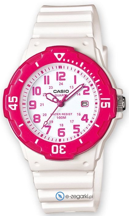 Damski zegarek Casio LRW-200H-4B to zegarek, który dzięki swemu wzornictwu zawsze będzie prezentował się dobrze. Ciekawy wygląd zegarka uzyskano m.in. poprzez cyferblat w kolorze białym. Zaprezentowana metodą analogową aktualna godzina jest czytelna i łatwa do odczytania. Koperta w odcieniach koloru różowego szeroka jest na 34 mm oraz ma grubość 11 mm - w kształcie okrągłym.