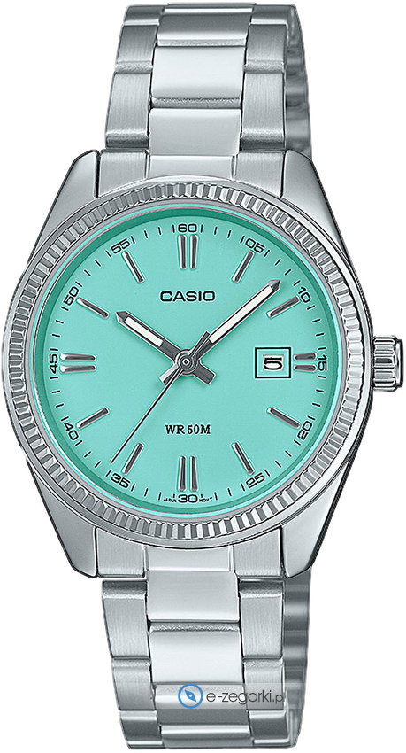 Damski zegarek Casio LTP-1302PD-2A2VEF to zegarek, który dzięki swemu wzornictwu zawsze będzie prezentował się dobrze. Charakterystyczny wygląd czasomierza osiągnięto także dzięki tarczy w kolorze niebieskim. Zaprezentowana metodą analogową aktualna godzina jest czytelna i prosta do odczytania. Koperta w odcieniach koloru srebrnego szeroka jest na 30 mm oraz ma grubość 9 mm - w kształcie okrągłym.